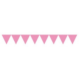 This adorable bright pink and white polka dots triangular flags paper banner will add a touch of sweetness to any baby shower or girl birthday party. You can also personalize it with her name putting letters that you can easily prepare with paper in the color you want! Dimension: 2,74 m Quantity: 1