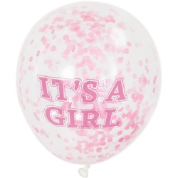 These It's a Girl Confetti Balloons are lovely to decorate girl Baby Shower parties! Before inflate it with air and/or helium, insert a bit of confetti in each balloon (using the included small funnel). Dimension: 30 cm Quantity: 6 balloons, 14g confetti