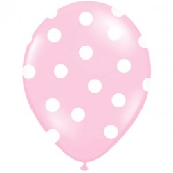 These white and pink dots balloons are made of high quality latex, can be filled with air ou helium gas if you want them to float. Dimension: 30 cm Quantity: 6