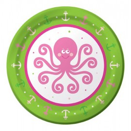 These plates from adorable Ocean Preppy theme are perfect for girls first birthday or baby shower parties! Combine with other green and pink decorative articles. Dimension: 18 cm Quantity: 8