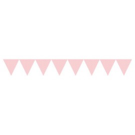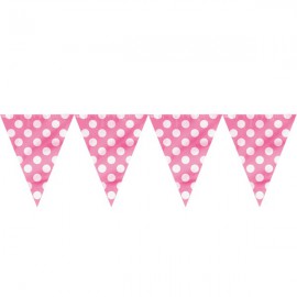 This adorable pastel pink and white polka dots triangular flags paper banner will add a touch of sweetness to any baby shower or girl birthday party. You can also personalize it with her name putting letters that you can easily prepare with paper in the color you want! Dimension: 2,74 m Quantity: 1