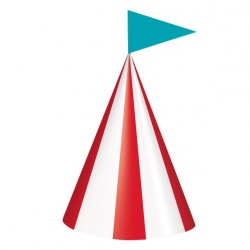 Wonderful Circus themed party hats, made in red and white striped cardboard with a little blue flag. Be sure every invitee have their own! Quantity: 8