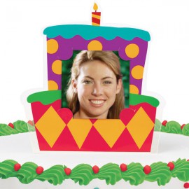 Cute and original decoration for birthday cakes in the shape of a colorful birthday cake. With space to insert the photo (5 x 5 cm) or write a message. Made of plastic, it can be reused several times. Dimension: 10,8 x 12,7 cm Quantity: 1