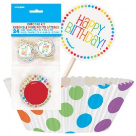 This kit is perfect to decorate cupcakes for every birthday party in an easy and quick way! Perfectly match to colorfull decoration! Dimension: baking cups 5 cm (for standard cupcakes) Quantity: 24 baking cups and 24 picks