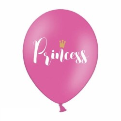 "Princess" printed latex fuchsia balloons, great to decorate themed girls birthday parties. Can be filled with air or helium. Dimension: 30cm Quantity: 5 See "Accessories".