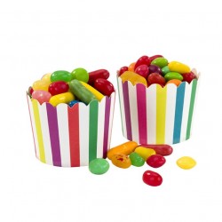 These multicolor striped paper cups are the perfect decoration to party table! Use them to serve treats, ice cream or to bake cupcakes! Dimension: 4,5 cm (high) x 6,0 cm (diameter) Quantity: 20