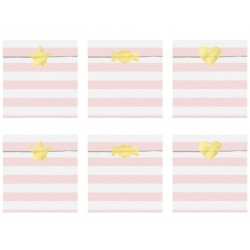 Wonderful set of pastel pink stripes paper treat bags with golden foil assorted stickers, great to decorate the party table and to thank invitees with treats or a small party souvenir. Dimension: 13 x 14 cm Quantity: 6