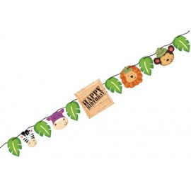 Party Animals Happy Birthday Garland, formed by multicolored cardboard letters and decorated with monkeys and toucans, wonderful to wish a very happy birthday in jungle themed parties! Match to other Party Animals range articles to complete the decoration. Dimension: 3,5 m Quantity: 1