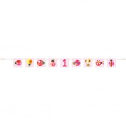 Ladybug First Birthday banner for girls first birthday party. Combine with other articles from the same range and accessories in pink, yellow, red and orange solid colors for a perfect decoration! Dimension: 213 x 15,3 cm Quantity: 1