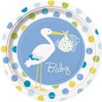 Welcome Baby Boy Baby Shower party range, in colors light and navy blue, featuring lovely stripes, baby shoes and clothes. Match party range articles with light and navy blue accessories to create a personalized Baby Shower party.