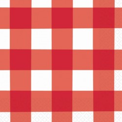 These Red Gingham paper lunch napkins are perfect for summer Picnic Parties! Combine with other Red Gingham, red and white solid colors articles to complete the decoration. Dimension: 33 x 33 cm Quantity: 16