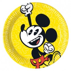 These brilliant yellow Mickey Super Cool paper dessert plates are great for an original Mickey Mouse themed birthday party! With a fun and modern design Mickey Super Cool articles are great to be matched to red and yellow accessories and decoration! Dimension: 20 cm Quantity: 8