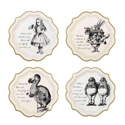 These original Alice in Wonderland themed paper plates in 4 different designs features images very representative of the tale. Combine with other Alice in Wonderland range articles and decoration to create your party! Dimension: 23 cm Quantity: 12 (3 of each design)