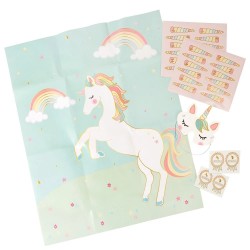 Wonderful version of the traditional kids party game, increase fun on your Unicorn Party with this Pin the Horn on the Unicorn Game. Include poster, blindfold and stickers.