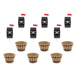 Complete kit with baking cups, wrappers and picks to decorate cupcakes to Pirates themed parties. The baking cups are made of oven-safe stiff paper, there's no need of muffin molds to bake it. Quantity: 36 (12 baking cups, 12 wraps and 12 picks)
