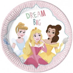 Take Disney Princesses to your party with these wonderful Princess Dare to Dream paper plates. Decorated in delicate pastel colors featuring the message "Dream Big" and three princesses in the center: Cinderella, Belle and Aurora. Your little princess party will be a great success! Combine with other Princesses articles to a complete decoration....