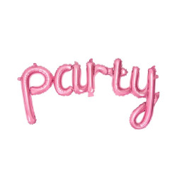 This pink foil balloon with written "party" in script letters is perfect to complete girls party decoration. Fill it with air and hang it up in the wall, beside garlands, ponpons and other balloons Dimension: 80 x 40 cm Quantity: 1