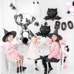 Black Bat Minishape Foil Balloon. This is an air filled balloon, that should be fixed to a balloon stick in order to be easily handled by the children. (It is sent flat) Dimensioni: 35 cm circa Pezzi: 1