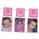 Quantity: 1 garland composed by 13 month cards, 13 photo holders (11 x 15 cm), 13 wood clothespins, pink satin ribbon