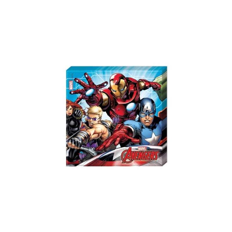 Avengers theme paper napkins for kids birthday party. Combine with other Avengers theme items, blue, green and red accessories and decoration!