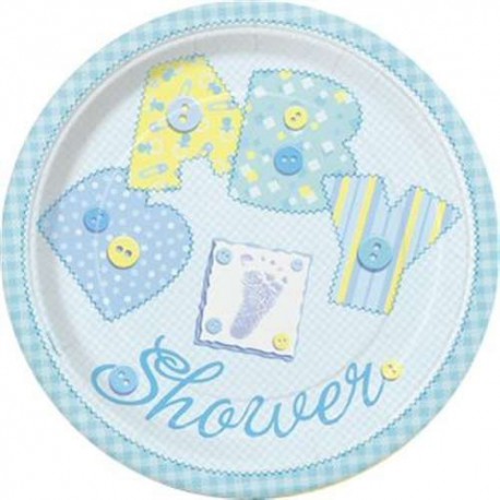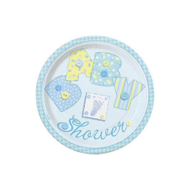 Baby Blue Stitching dessert plates for babies celebration parties.