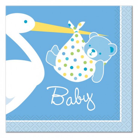 Lovely beverage napkins from Baby Boy Stork range for boy's baby shower parties.