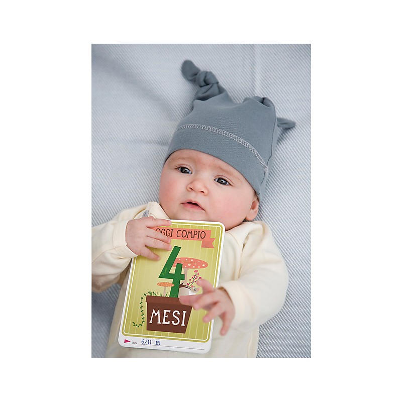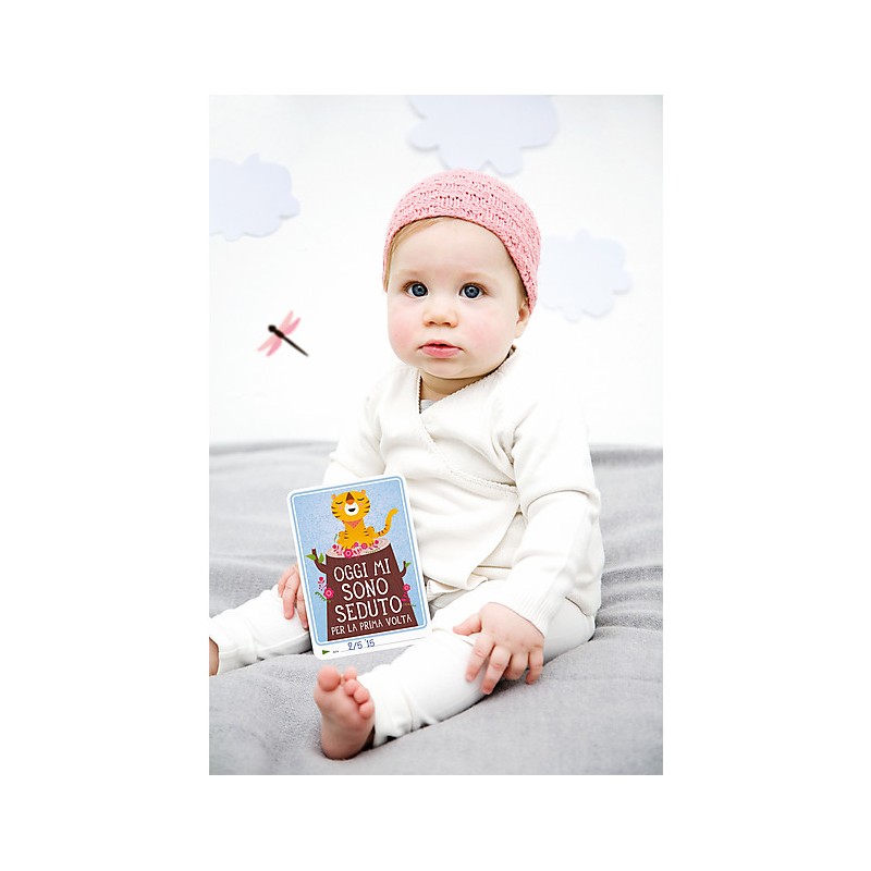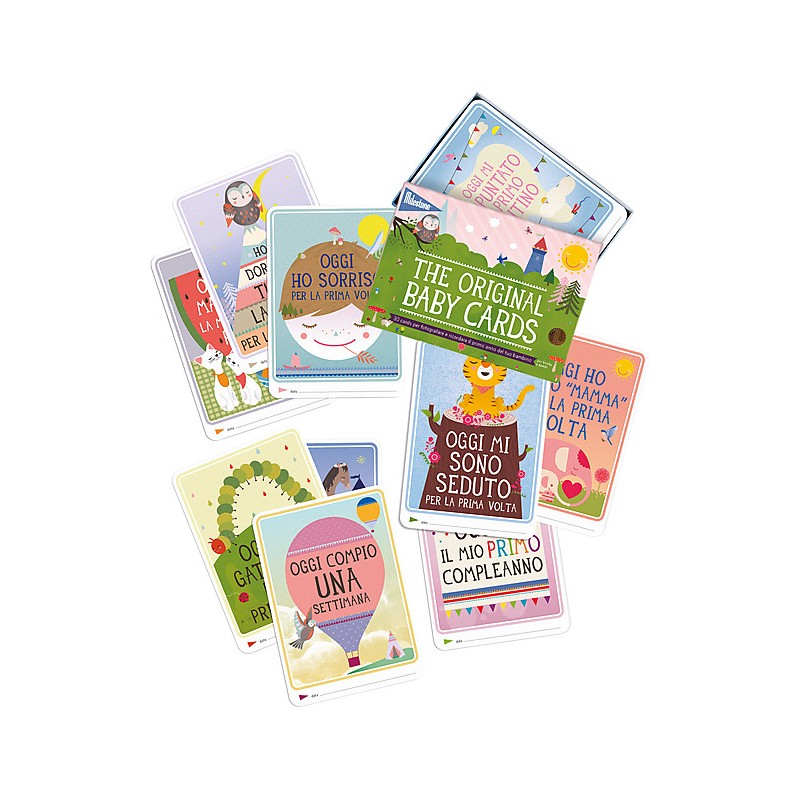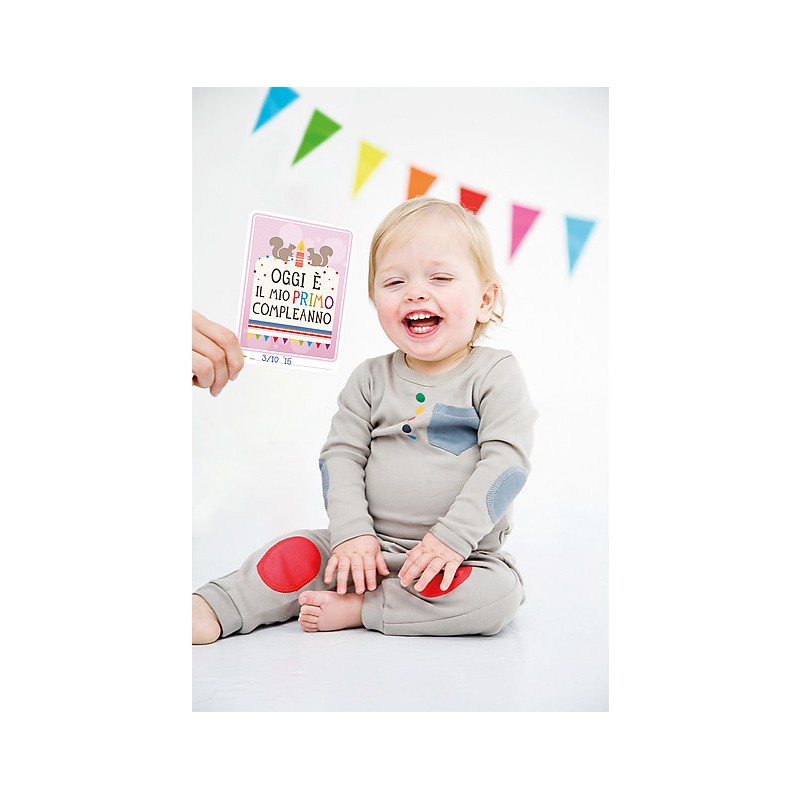 Remember your baby's first year through the weeks, months and major events with these wonderful Milestone Cards. The package contains 30 postcards with the most significant events of his/her first year. Simply write the date and take a picture to your baby with the card. Perfect as a birth gift and Baby Shower!