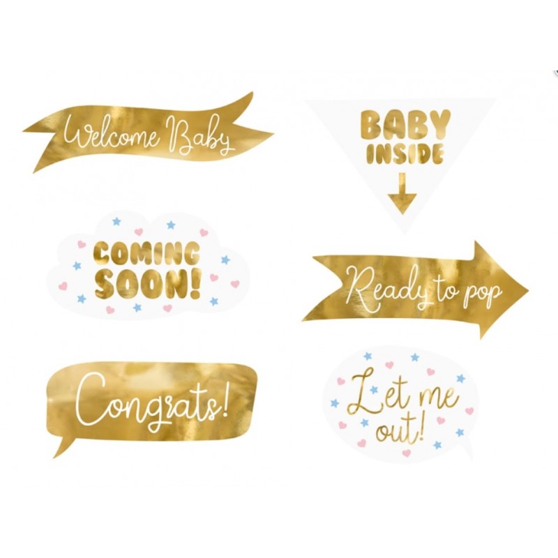 Amazing pictures and great fun to Baby Shower parties with this photo props set. Comes with 6 card in various designs and colours