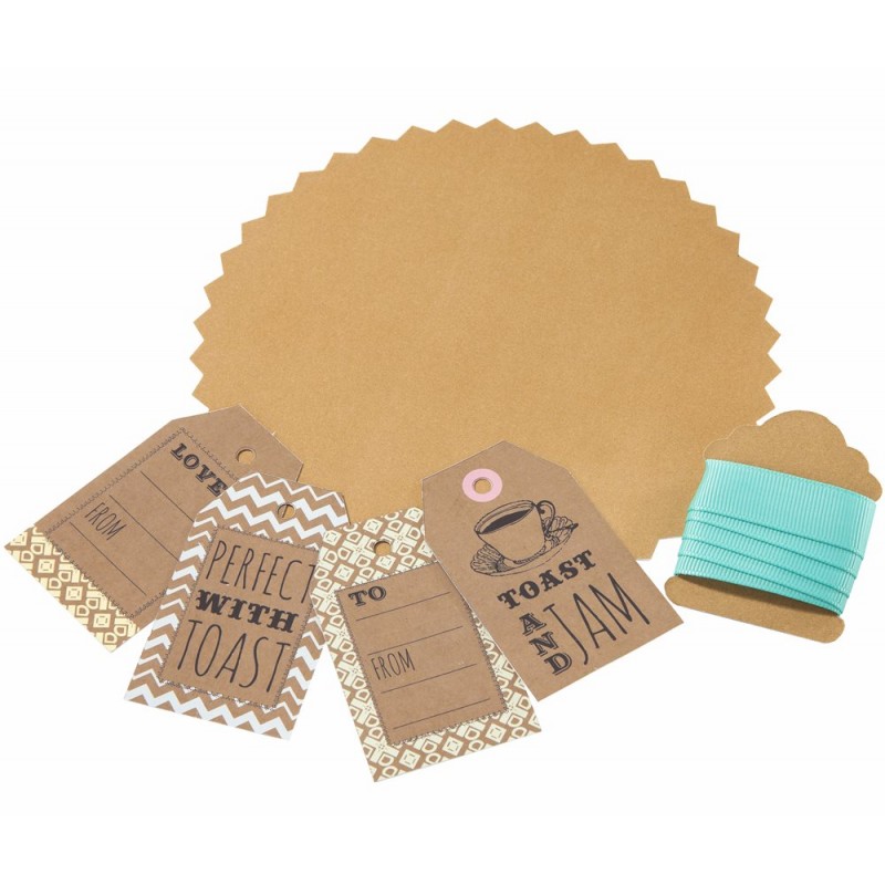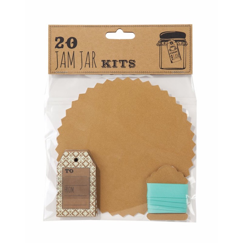 To valorize even more your delicious home made jam, a wonderful jam jar kit with paper covers, labels and a beautiful teal cotton ribbon.