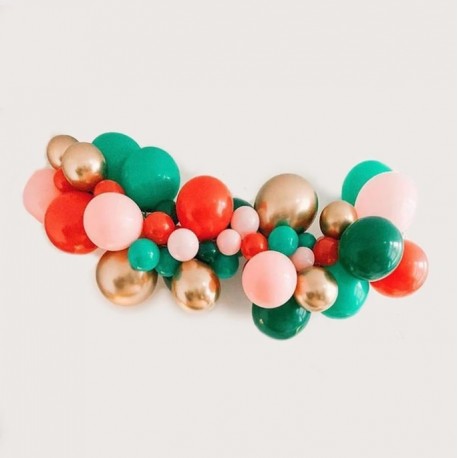 Create a wonderful Pink Christmas Balloon Garland to decorate your home with this kit containing a mix of 54 balloons in assorted colors (green, red, gold and pink) and dimensions (12 and 28 cm) and 2m of special balloons stripe. Just fill all the balloons with air (using a balloons pump) and attach them to the balloons, giving to the garland the shape you prefer.