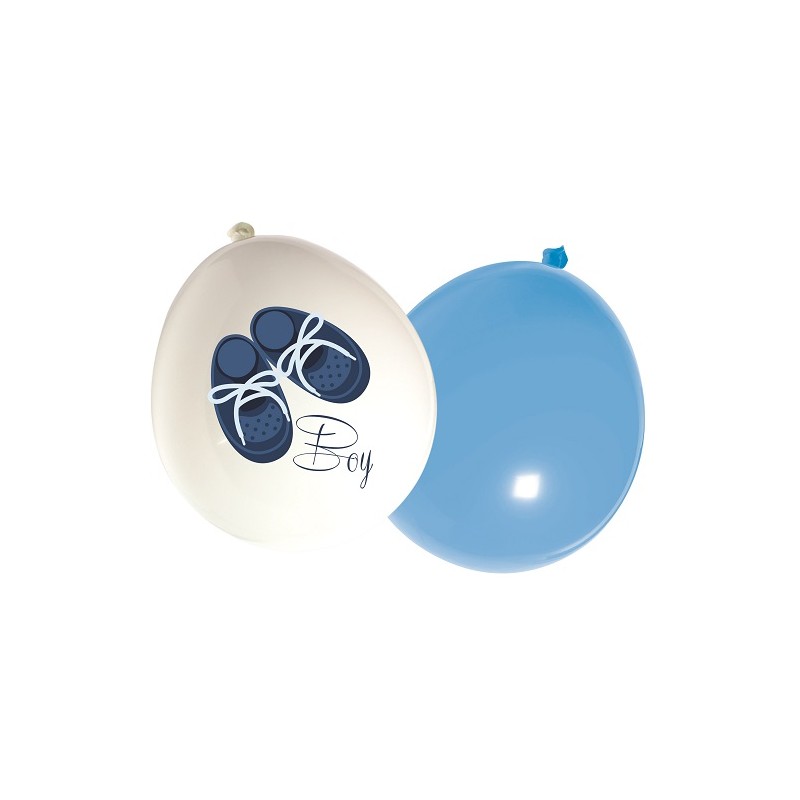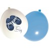 Set of blue and white assorted lattex balloons, featuring lovely baby boy shoes. Ideal to Baby Shower and birth celebrations and perfectly match to blue decoration!