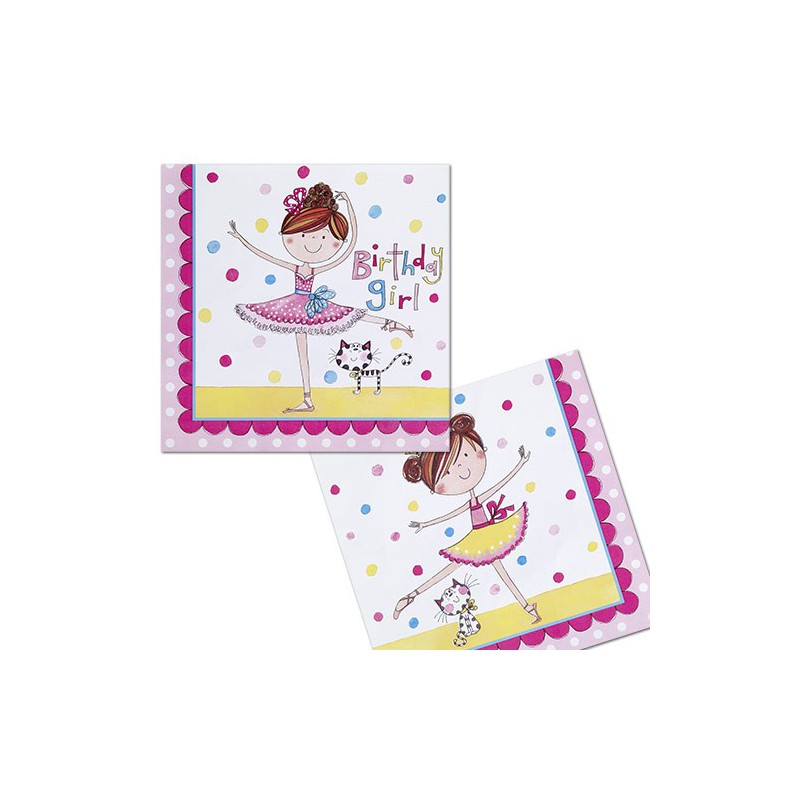 A lovely ballerina decorates these wonderful lunch napkins from Rachel Ellen Birthday Princess party supplies, perfect for original ballerina birthday parties!