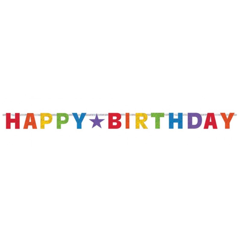 This amazing multicolour banner is also prismatic, to make your party even more shinny! Made in cardboard, features the message "Happy Birthday" in the colors of the rainbow and is suitable to every age birthday party!