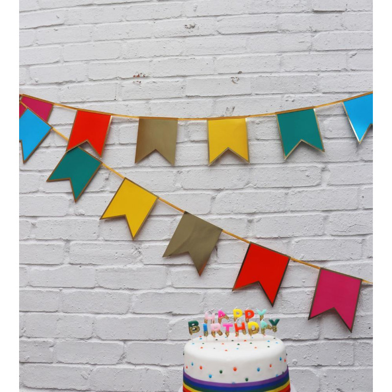 Wonderful multicolour flags banner made in cardboard with gold foil detail.