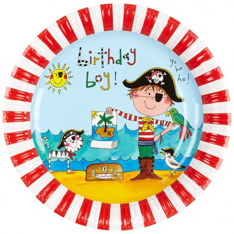 An adorable pirate with his friends is the star in this wonderful paper plates from Rachel Ellen Birthday Pirate party supplies, perfect for youngest boys birthday parties!