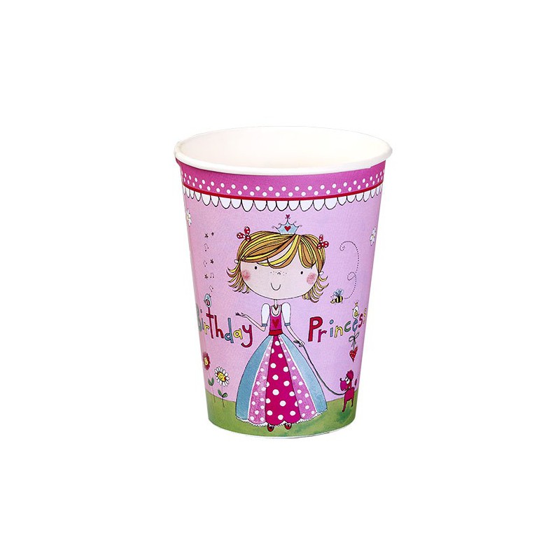 An adorable little princess and her castle decorate these wonderful paper cups from Rachel Ellen Birthday Princess party supplies, perfect for original princess birthday parties!
