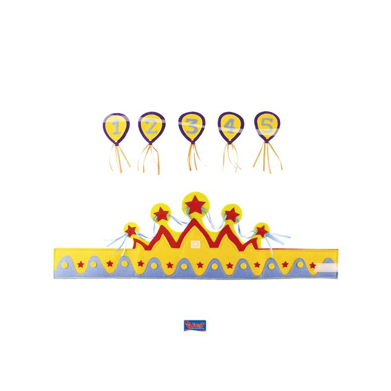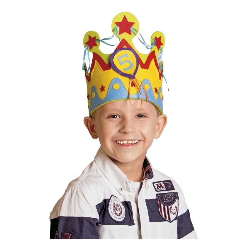 This fantastic felt crown in the perfect accessory for firt to fifth birthday parties.