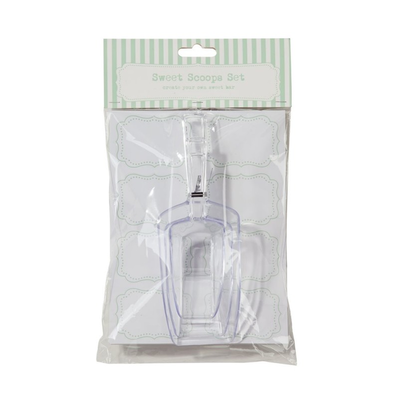 Quantity: 3 scoops (20x7 cm, 17x6 cm e 13x4 cm), 8 sticky labels and 1 sweet bar sign