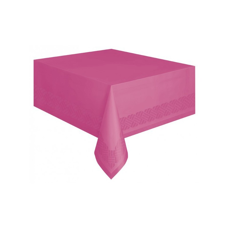 This tablecover is ideal for many occasions. Hot pink, made in absorbant paper surface and waterproof plastic in the back, preventing it to slip.