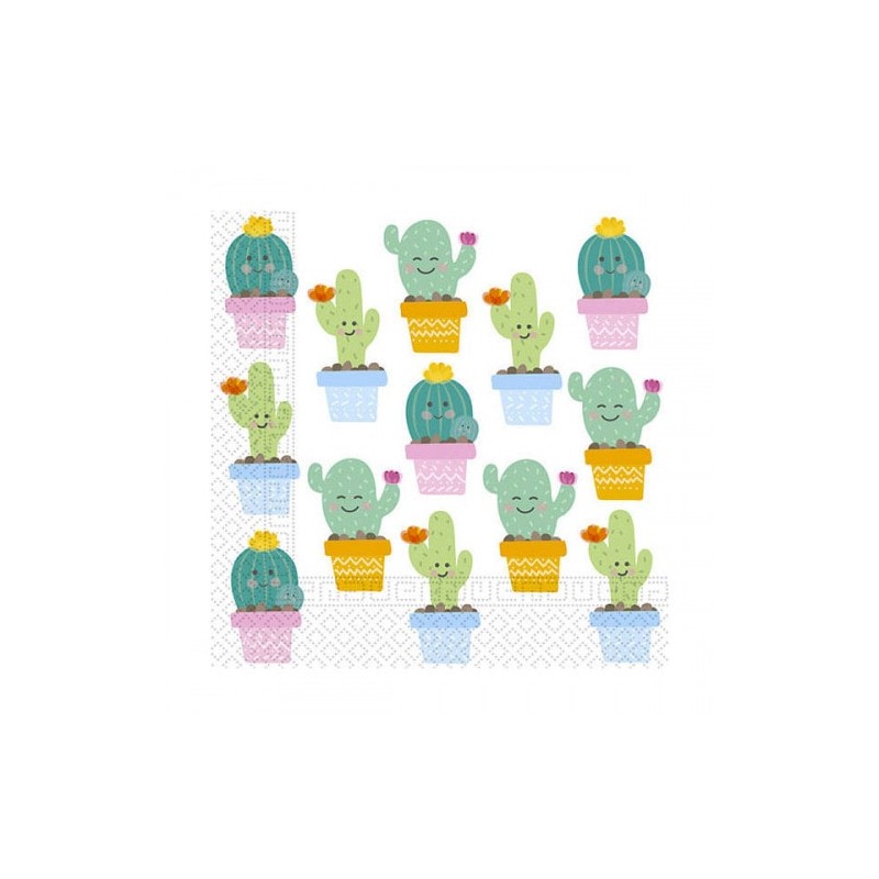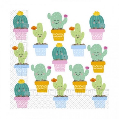 Cactus themed paper napkins. Combine with other articles from the same range and accessories in rustic materials like juta and solid colors like kraft or pastel. If you want to mix, it is also a great match to Llama party range articles!