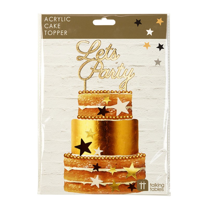 Lets Party cake topper, a wonderful cake decoration for special occasions. Golden acrilic made, can be re-used.