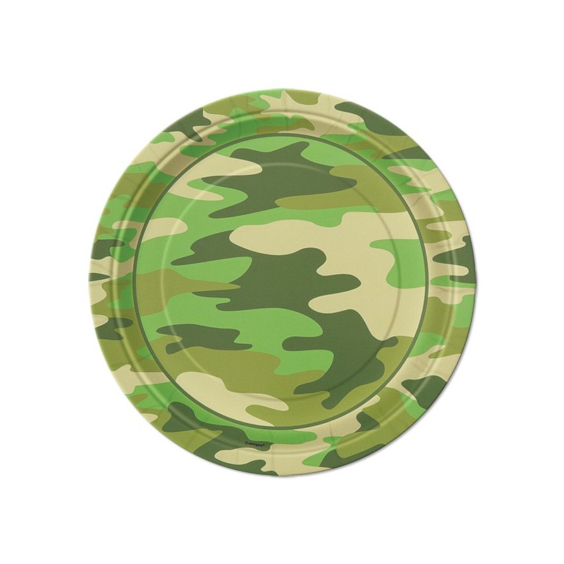 Camouflage party dessert paper plates. Great theme for boys who loves playing with soldiers! Combine with other Camouflage party theme articles for an amazing decoration!