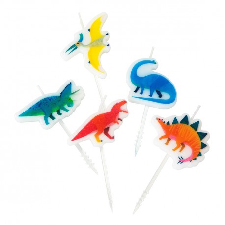 This set of Mini Dinosaurs Candles is great to decorate Dinosaurs themed party cake or cupcakes! Each pack contains 5 candles – a Pterodactyl, T.Rex, Brachiosaurus, Stegosaurus and Triceratops.