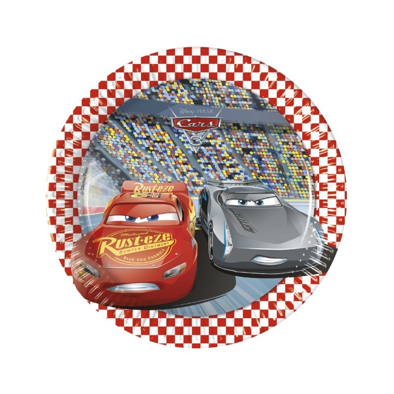 Cars 3 paper dessert plates for Cars fans boys birthday parties. Combine with other Cars articles!