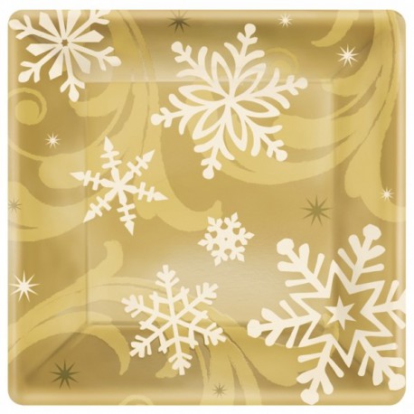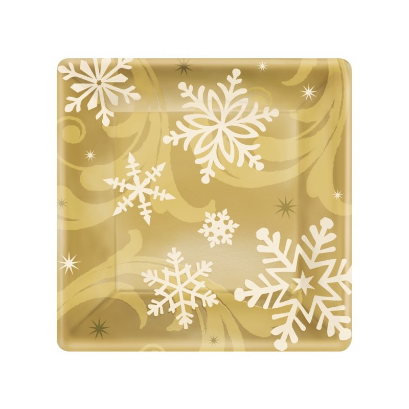 These beautiful square paper plates are perfect for serving desserts on Christmas parties. Combine with napkins and other golden coloured items for a wonderful decoration.
