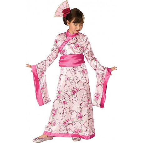 Asian Princess or Gheisha Costume for girks carnival party. With dress, obi and headpiece.