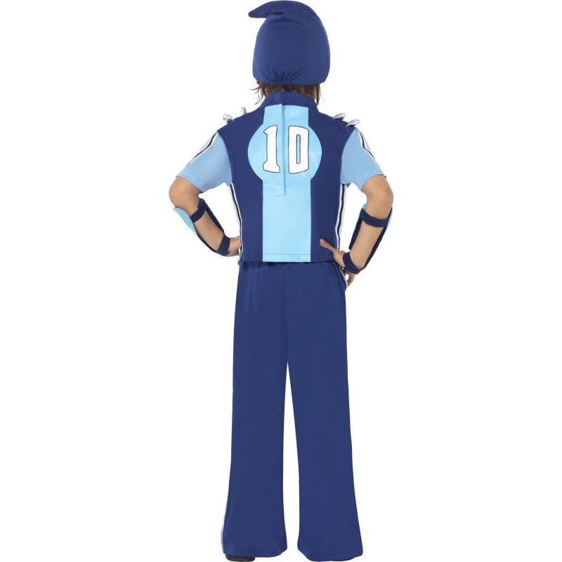Sportacus (Lazy Town) kid's costume. Includes Top, Trousers, Arm Cuffs and Hat.