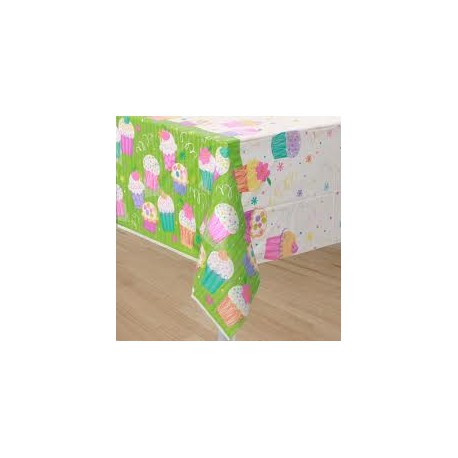 Cupcake Party plastic tablecover for girls birthday party. Combine with other Cupcake Party items, pink and green cutlery and balloons for a perfect decoration! Even better if beautiful real cupcakes are served!