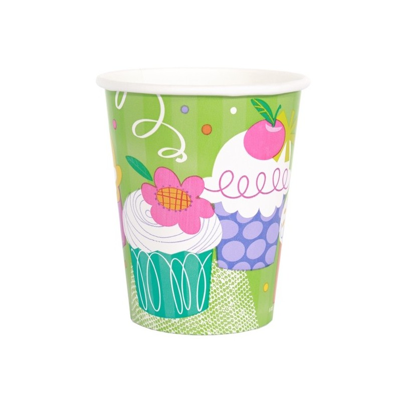 Cupcake Party paper cups for girls birthday party. Combine with other Cupcake Party items, pink and green cutlery and balloons for a perfect decoration! Even better if beautiful real cupcakes are served!