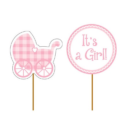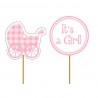 Set of picks in 2 different models to girl's baby shower. Can be used for cupcakes, sandwichs or other food to easily decorate baby showers party table! Perfectly match to pastel pink decoration!